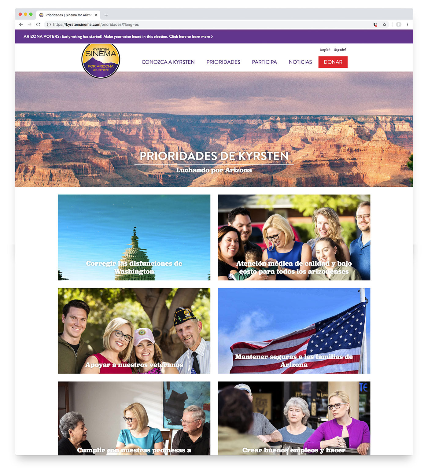 Kyrsten Sinema 2018 Election Day splash page, integrating